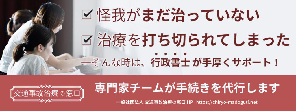 弊所は、「一般社団法人 交通事故治療の窓口」所属の行政書士事務所です。